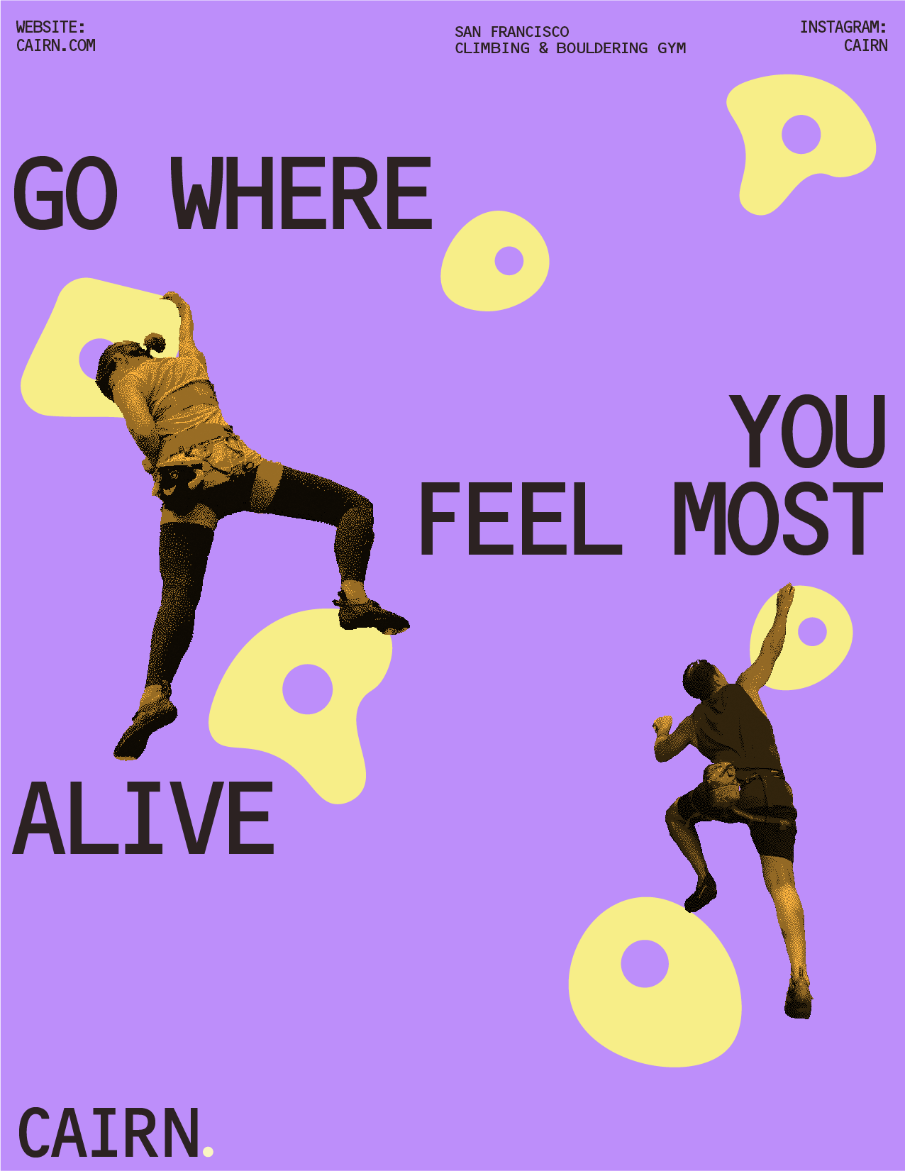 Brand identity for CAIRN, a fictional rock climbing and bouldering company based in San Francisco